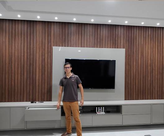 Apresento os projetos em 3D como uma etapa fundamental do meu processo de criação, pois eles permitem que o cliente visualize com clareza como os móveis ficarão depois de prontos. Por meio das imagens em três dimensões, é possível compreender melhor o layout, as proporções, os detalhes construtivos e os acabamentos escolhidos, evitando dúvidas e surpresas durante a execução.